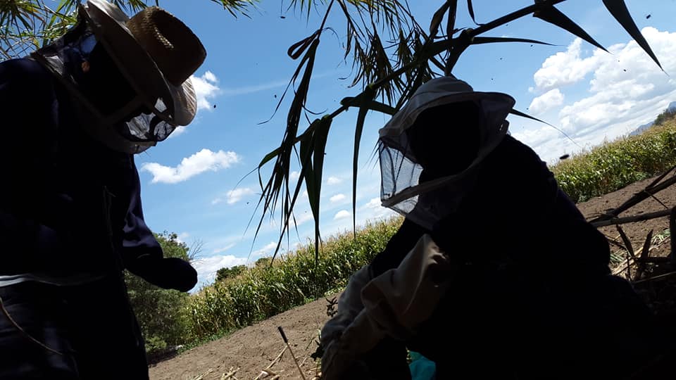 Las tierras de cultivo suelen estar separadas por lineas de carrizos, que sirven de lindero, sombra, tambien es utilizado para la elaborar canastos, canastas, tortilleros, tenates y algunos objetos de ornato, por lo que son podados con cierta perioricidad, esto provoca que la raiz siga creciendo, haciendo huecos suficientemente grandes para la construccion de panales. Estos estan protegidos de la lluvia, tierra, sol, depredadores naturales y fango si llegara a ser el caso, ya que los panales siempre estan construidos desde arriba, pegados en el techo.