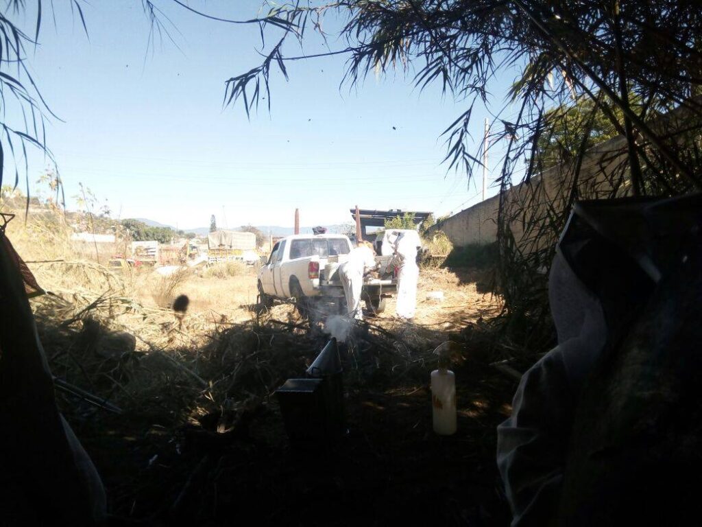 Reubicación simultanea de dos colmenas a las orillas del río Atoyac en la central de abastos, allá por el año 2017.